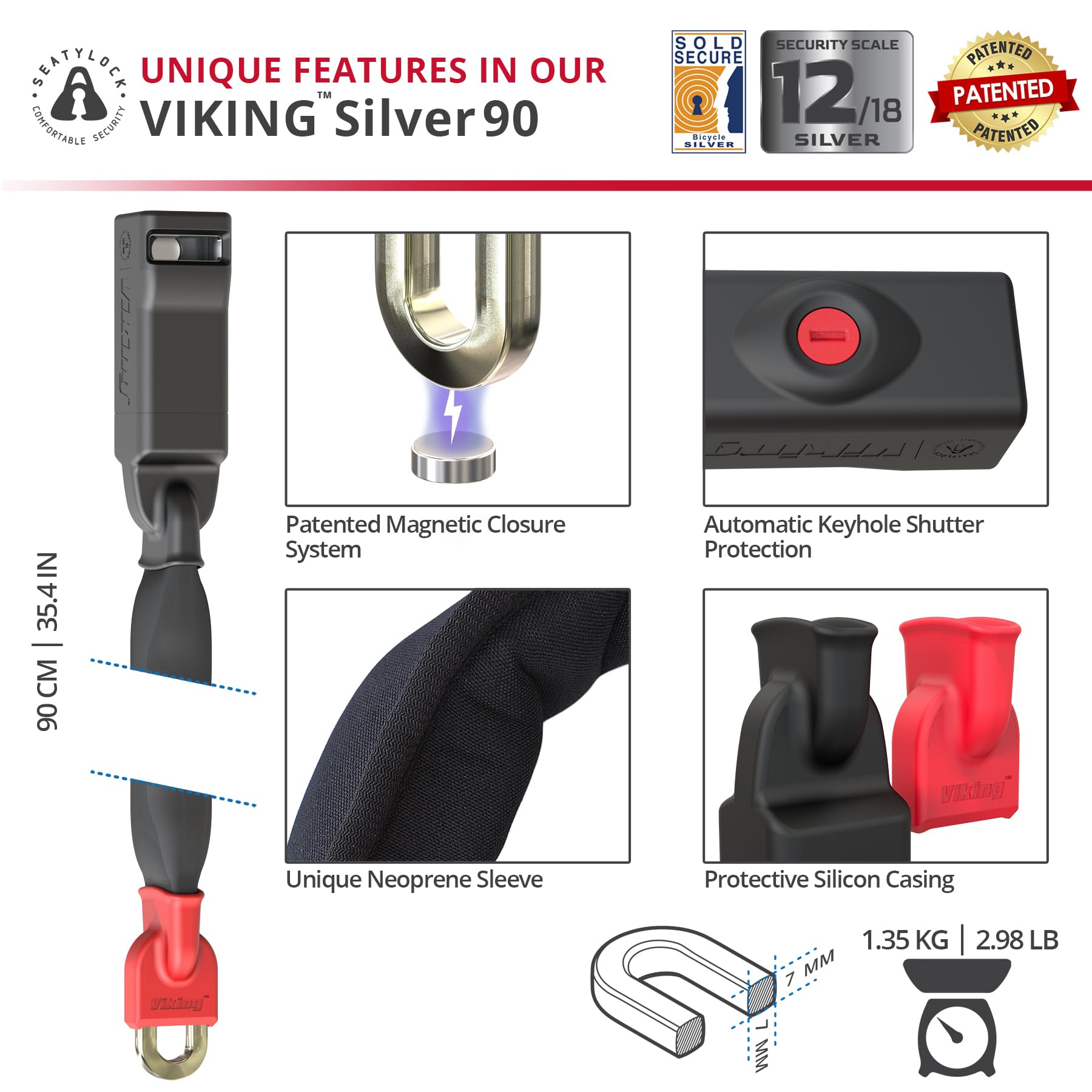 Does the Seatylock Viking Silver 90 feature the patented magnetic closure that makes it one of the world's only chain locks of its kind?