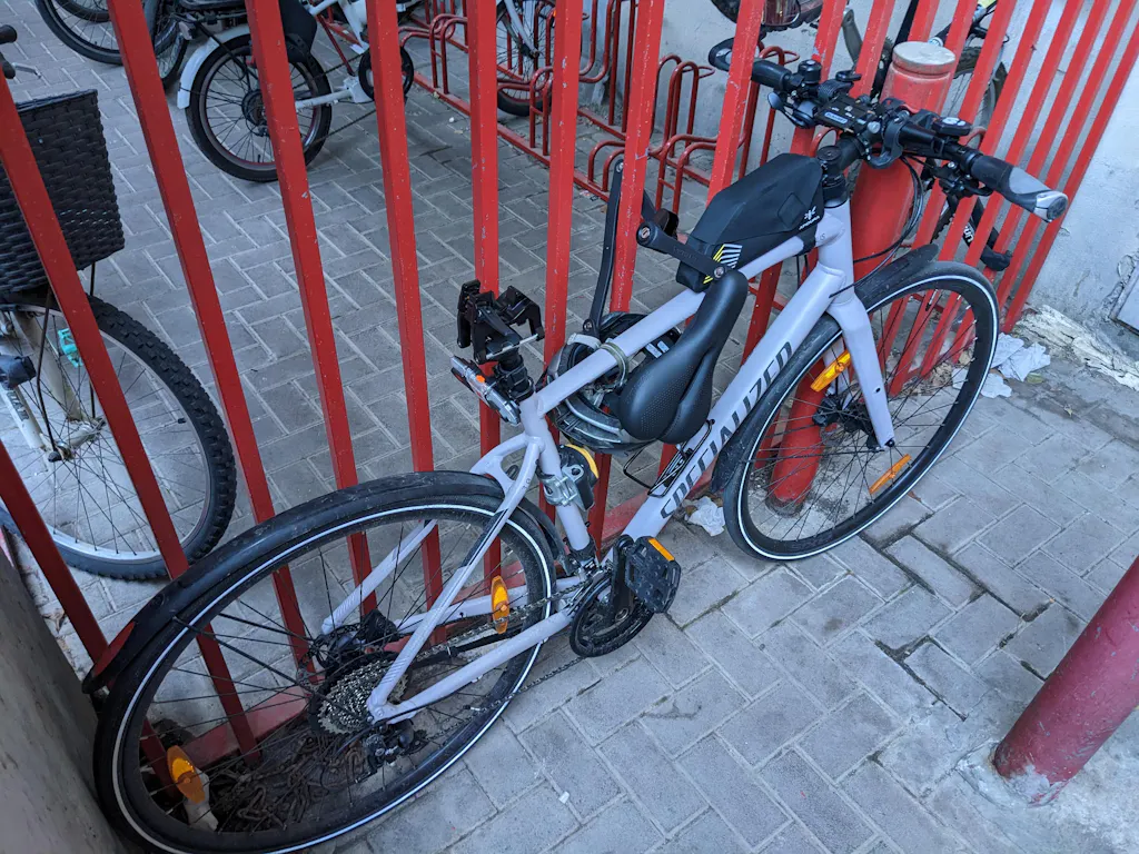 After 7 years of extensive use, the fabric (upholstery) of the saddle had just started to wear out, and also the lock frame had annoying scratch marks around the point where the thieves had tried to break it.
